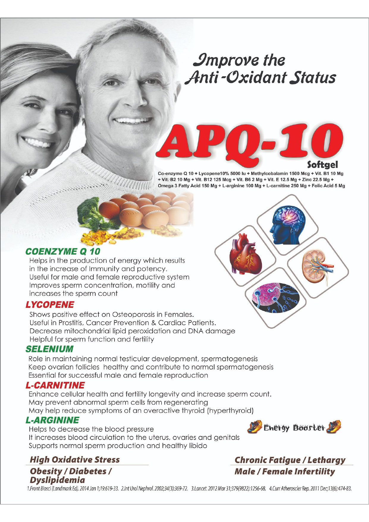 CO-ENZYME Q 10 100MG + LYCOPENE 10% 5000 IU + CYANOCOBALAMIN 2.2 MCG + VIT. B1 2 MG + VIT. B2 3MG + VIT B6 2 MG +VIT E 10 MG + ZINC SULPHATE MONOHYDRATE 22.5 MG + OMEGA-3 FATTY ACID 150MG + L-ARGININE 100 MG + L-CARNITINE 250 MG + FOLIC ACID 300 MCG